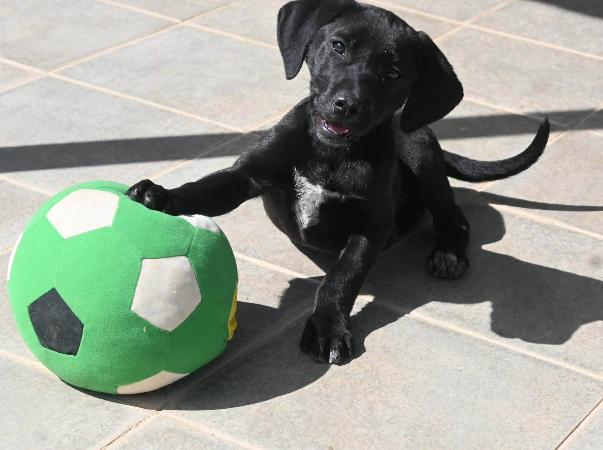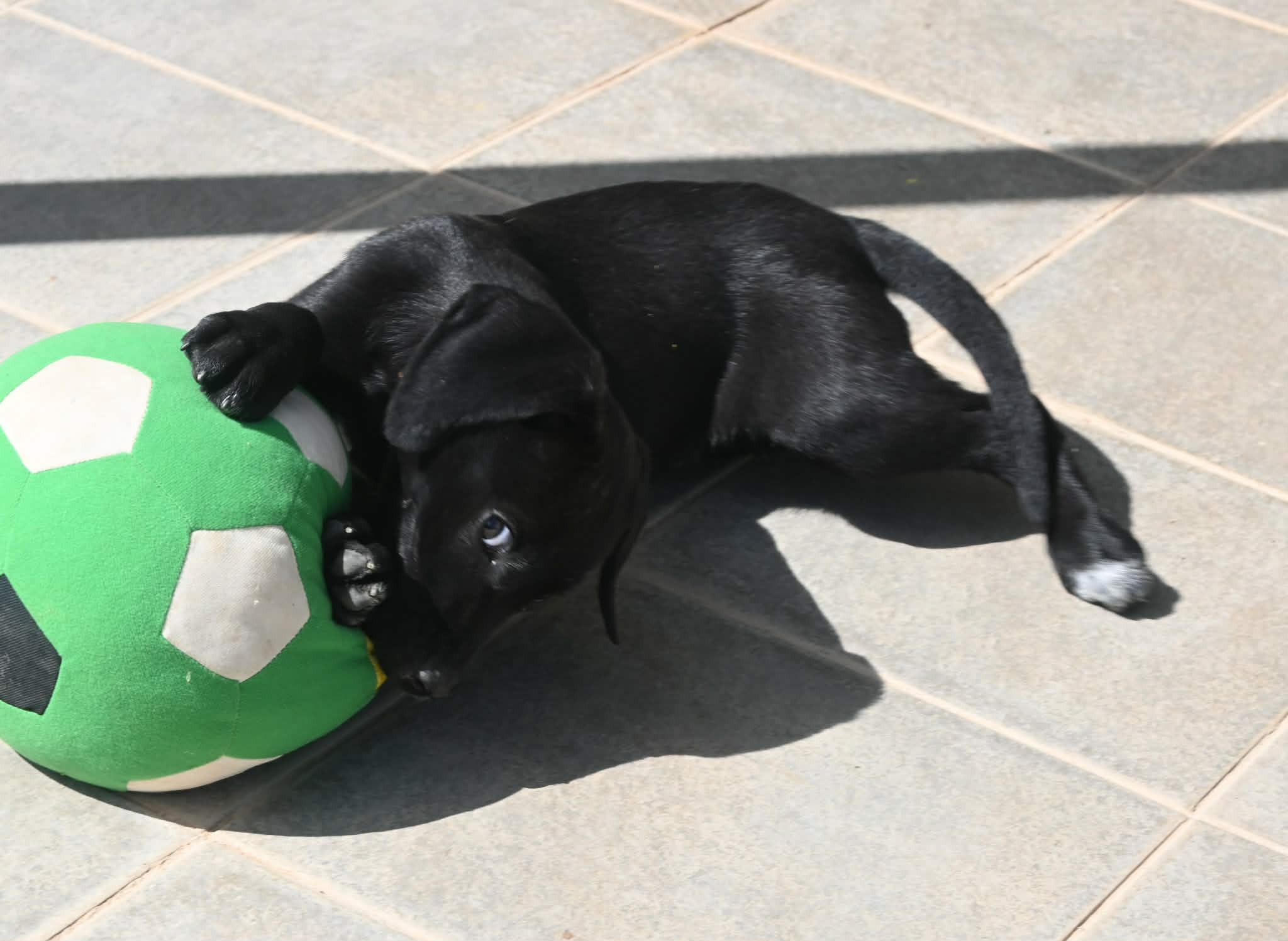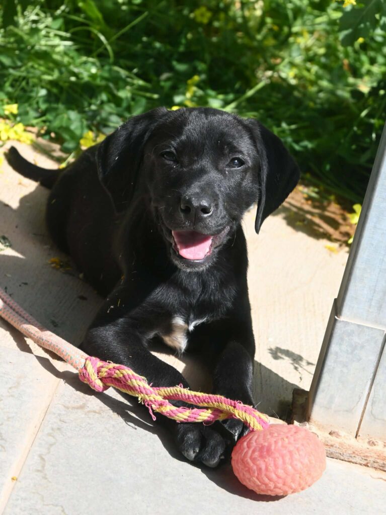 Olive is a playful, clever puppy who loves people and other dogs. While she was at Constantina’s house she had both puppy and adult doggie friends and now that she’s at the sanctuary she’s met more dogs. Like most puppies, she likes to play, but she’s also good at reading other dog’s signals having been well socialised form a young age.