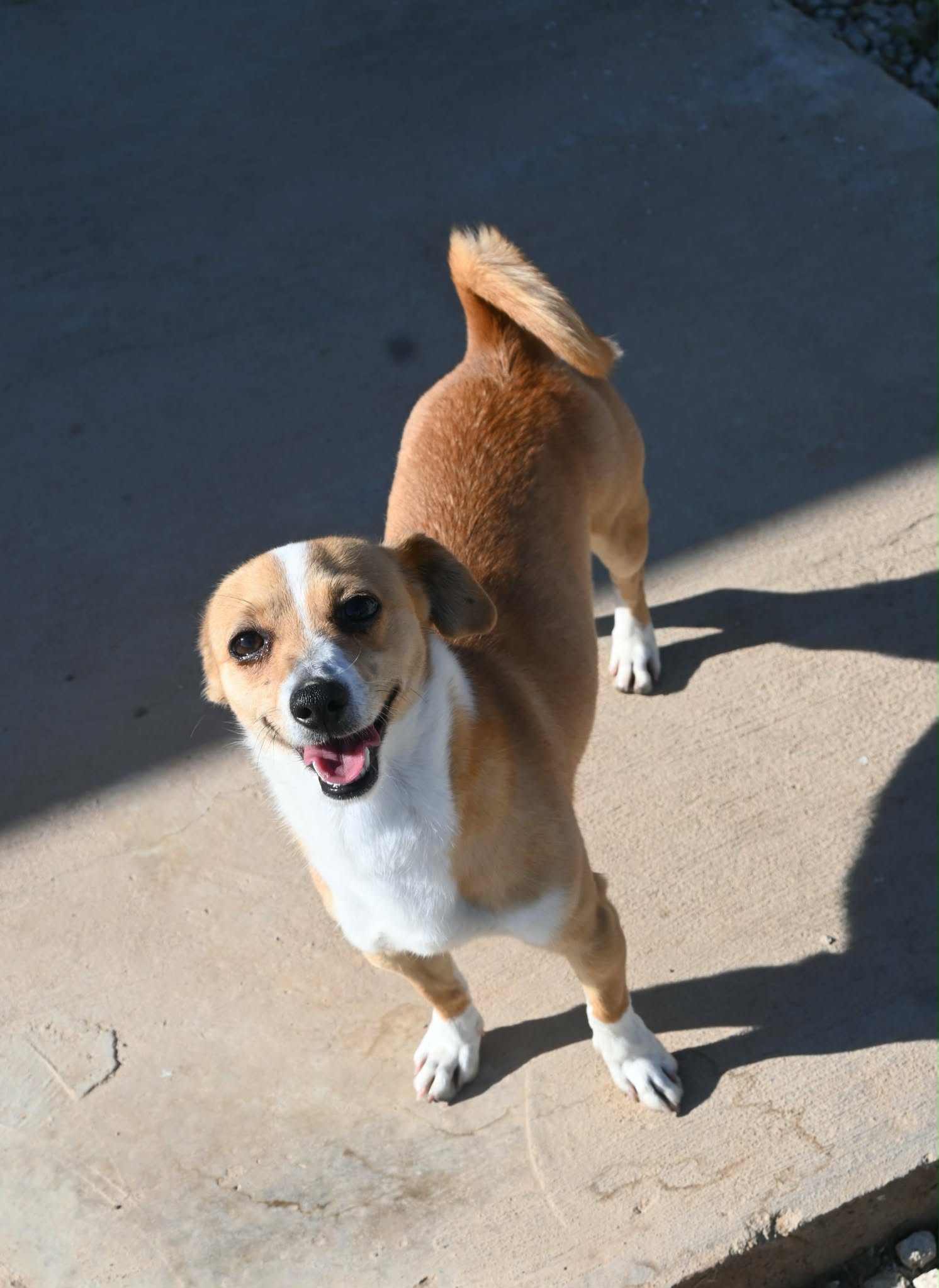 Phoebe is a very small girl with a big personality. She loves cuddles and will often roll over in front of you asking for belly rubs. She’s a clever little dog, and food motivated which should make her easy to train.